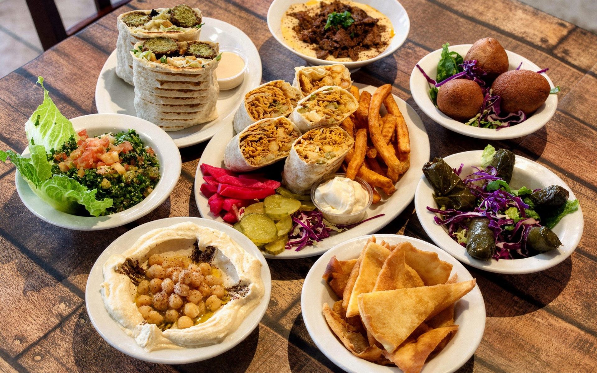 We are known for Dolmas, Shawarma, Chicken Shawarma, Tabouli, Beef Shawarma, Baklava, Kibbeh, Lamb Shawarma, Vegetarian Food, Pita Bread, Tacos, Falafel, Hummus, Burritos, and Middle Eastern Food